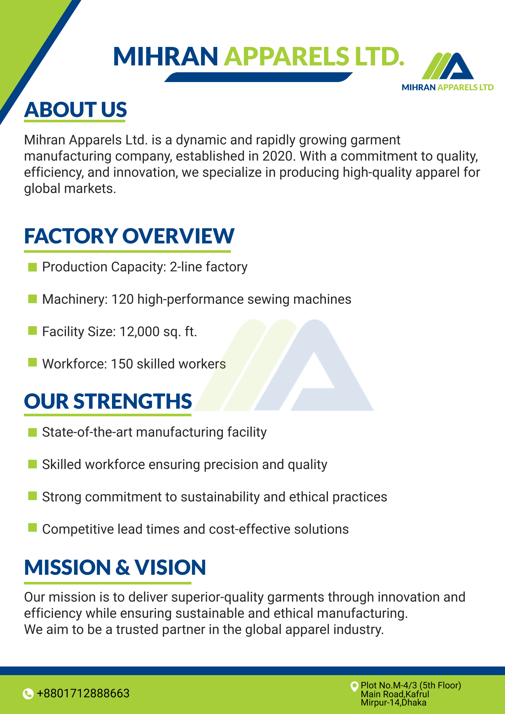 Mihran Apparel Ltd. is a dynamic and rapidly growing garment manufacturing company, established in 2020.